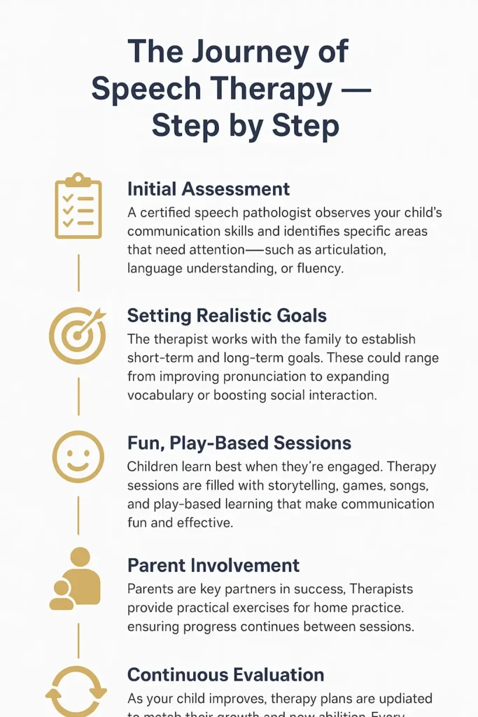 Every child’s speech therapy journey is different, but most follow a simple process: